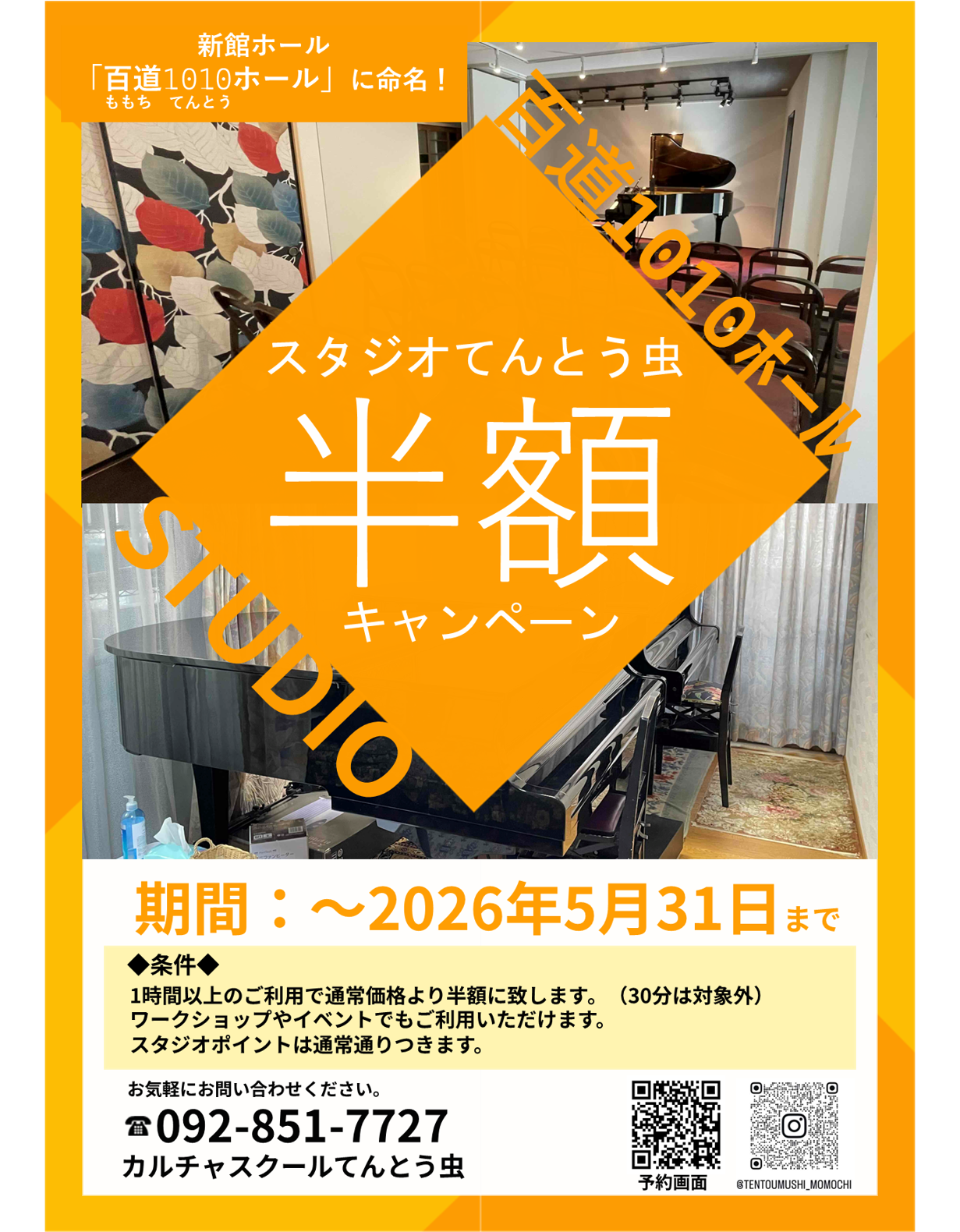 スタジオ半額キャンペーンを実施いたします。